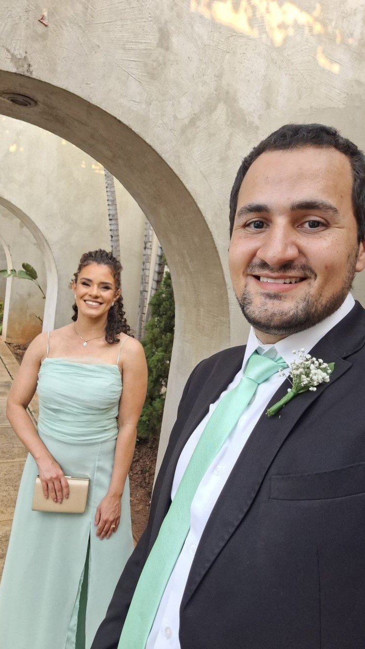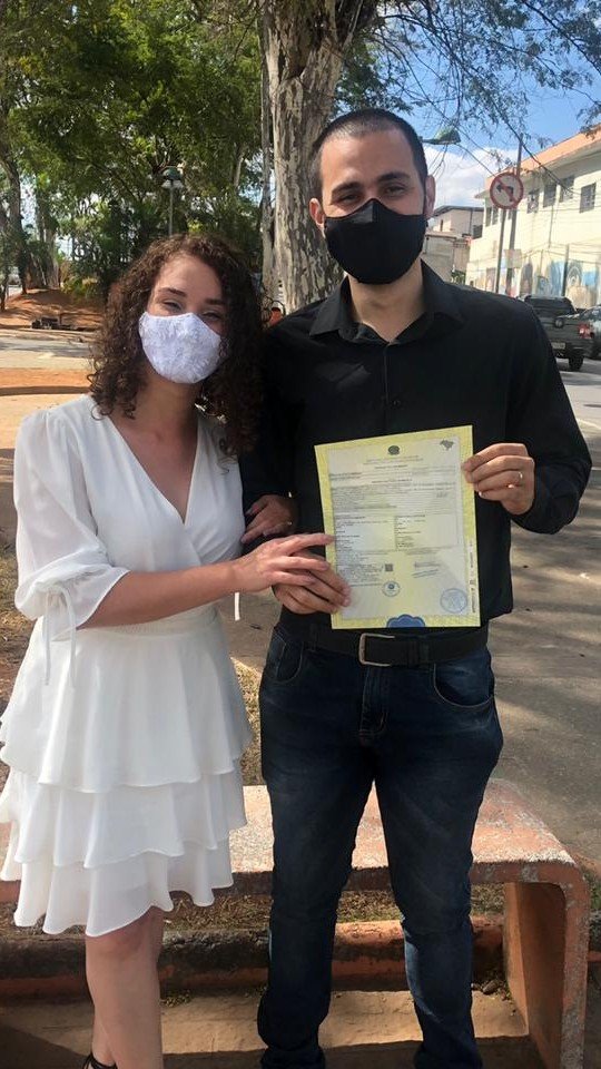 O casamento, inicialmente agendado para 2021, foi impactado por um mundo parado pela pandemia. Diante desse cenário, uma solução, um passo importante nas nossas vidas: “Por que não casamos de uma vez, então!?”. E tudo acontece por um motivo... Conseguimos um bom apartamento, compramos os móveis e, em setembro de 2020, nos casamos, de máscara, num mundo de incertezas, mas com a nossa certeza de que tudo ficaria bem ficando juntos. O primeiro ano de confinamento não foi fácil, mas foi ali que aprendemos, na prática, o significado de amor e de enfrentar juntos os desafios e apoiar um ao outro.