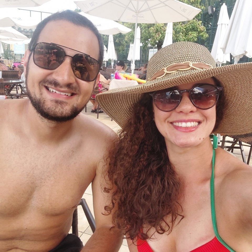 A nossa história começou lá em setembro de 2017, quando os dois, despretensiosamente, resolveram entrar em um aplicativo de namoro. Um rapaz low profile e uma menina com foto na praia, com sorriso largo e que adorava viajar e baladas. Depois de muita conversa, o primeiro encontro aconteceu. Quando Marco a viu, toda arrumada, com aquele sorrisão, ele sentiu que era diferente... Ela o viu todo engomadinho, vestido com uma blusa social, que sente falta até hoje, e abriu a porta do carro. O encontro foi acontecendo, papo vai, papo vem, acompanhado de um bom jantar, eis que, no final, aconteceu o primeiro beijo. E aí tudo foi acontecendo muito rápido e, em menos de 40 dias, já estávamos namorando. O que era curiosidade virou certeza, parceria e amor. Entre conversas longas, risadas, piadas ruins e uma vontade enorme de estar juntos, começamos aquilo que se tornou um projeto de vida a dois.
